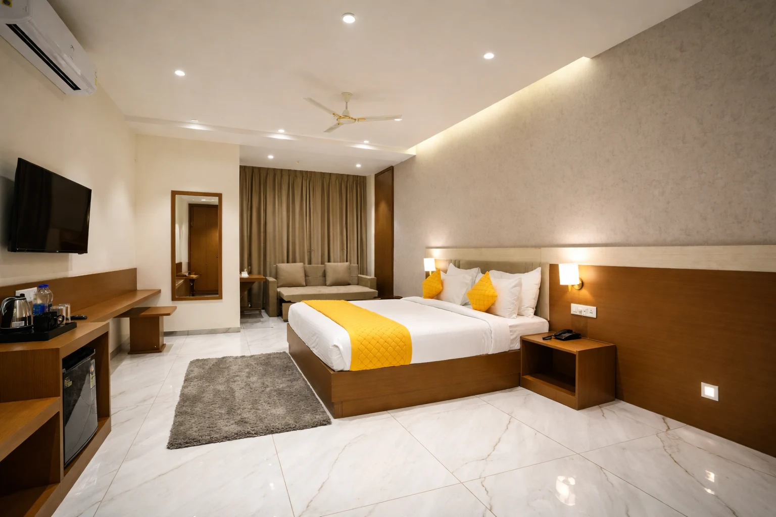 The Grand Room is crafted for guests seeking a premium and refined stay. With spacious layouts, tasteful interiors, and superior comfort, this room is ideal for business travellers, families, or special visits. It offers a relaxed atmosphere where comfort, privacy, and convenience come together seamlessly.